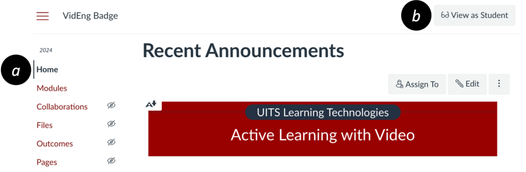 - Select Home [a] then Student View [b]. Keep in mind that anything that’s unpublished (including Modules) won’t be visible in Student View.