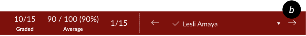 - Move to the next submission using the right arrow [b] next to student names at the top.