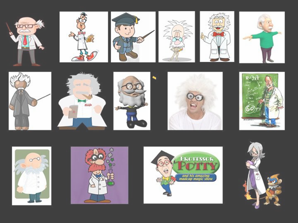 It is happily the case that in 2017 there are more women in what we would all probably agree are ‘powerful’ positions than there were ten, let alone fifty years ago. Whether that is as politicians, police commissioners, CEOs, judges or whatever, it’s still a clear minority – but there are more. (If you want some figures, around 4 per cent of UK MPs were women in the 1970s; around 30 per cent are now.) But my basic premise is that our mental, cultural template for a powerful person remains resolutely male. If we close our eyes and try to conjure up the image of a president or (to move into the knowledge economy) a professor, what most of us see isn’t a woman. And that’s just as true even if you are a woman professor: the cultural stereotype is so strong that, at the level of those close-your-eyes fantasies, it is still hard for me to imagine me, or someone like me, in my role. I put the phrase “cartoon professor” into Google Images – “cartoon professor” to make sure that I was targeting the imaginary ones, the cultural template, not the real ones. Out of the first hundred that came up, only one, Professor Holly from Pokémon Farm, was female [fig. 2]
