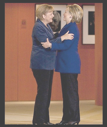 - Angela Merkel (left) and Hillary Clinton (right) being twinsies
