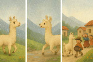 Desde entonces, cada vez que el cielo trae lluvia, los niños del pueblo recuerdan la historia de la llama que ayudó con valentía y bondad.