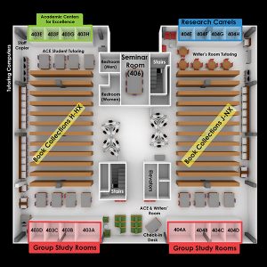 In the previous chapter, the Library of Congress Call number system was described. If you find a print book in IUCAT, you can check the letter of the call number to see which floor to go to the get the book. Our circulating collection is on floors 3, 4, & 5. The maps below provide more detail. You can also find these maps on our website, where you view larger versions of the maps.